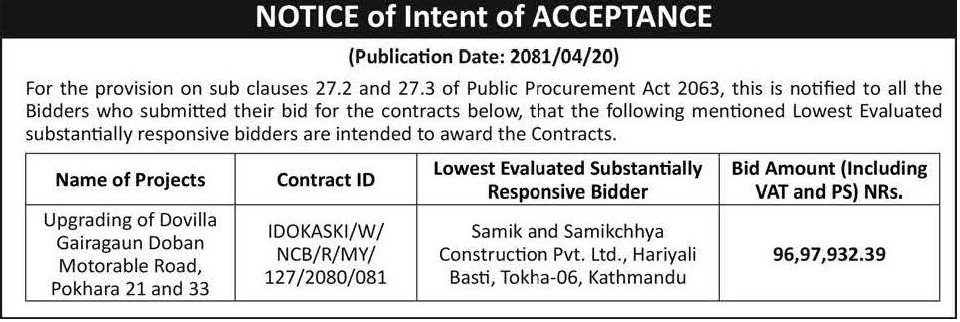 वोलपत्र आह्वान सम्बन्धि सूचना (प्रकाशित मिति २०८१।०८।१७)